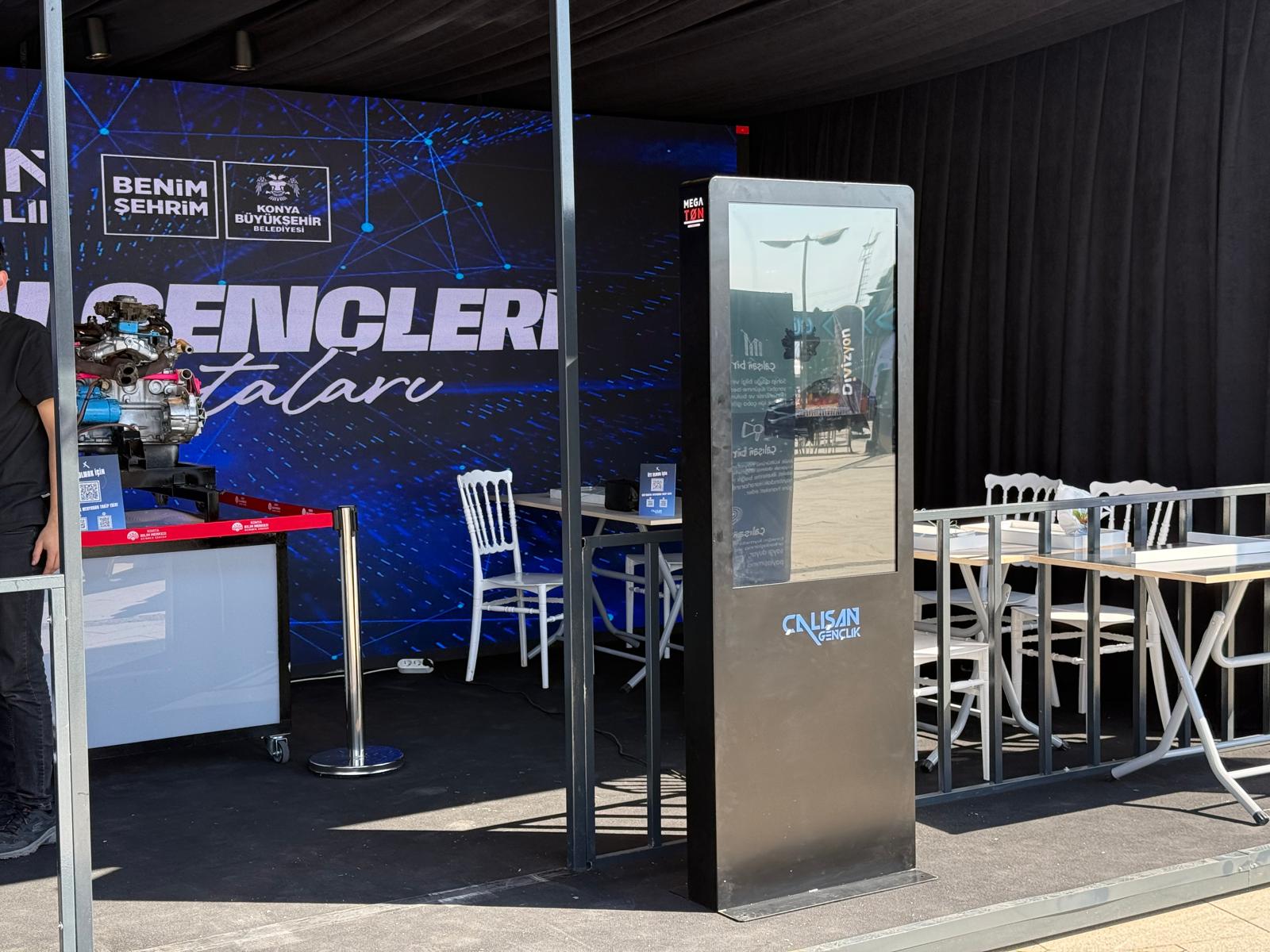 Konya Bilim Fuarı’nda yer alan kiosk yazılım projemizde, kullanıcıların 3D araç modelini etkileşimli olarak inceleyebildiği, iç tasarıma girebildiği ve motor ile teknik detaylara dokunarak ulaştığı dijital bir deneyim sunduk.